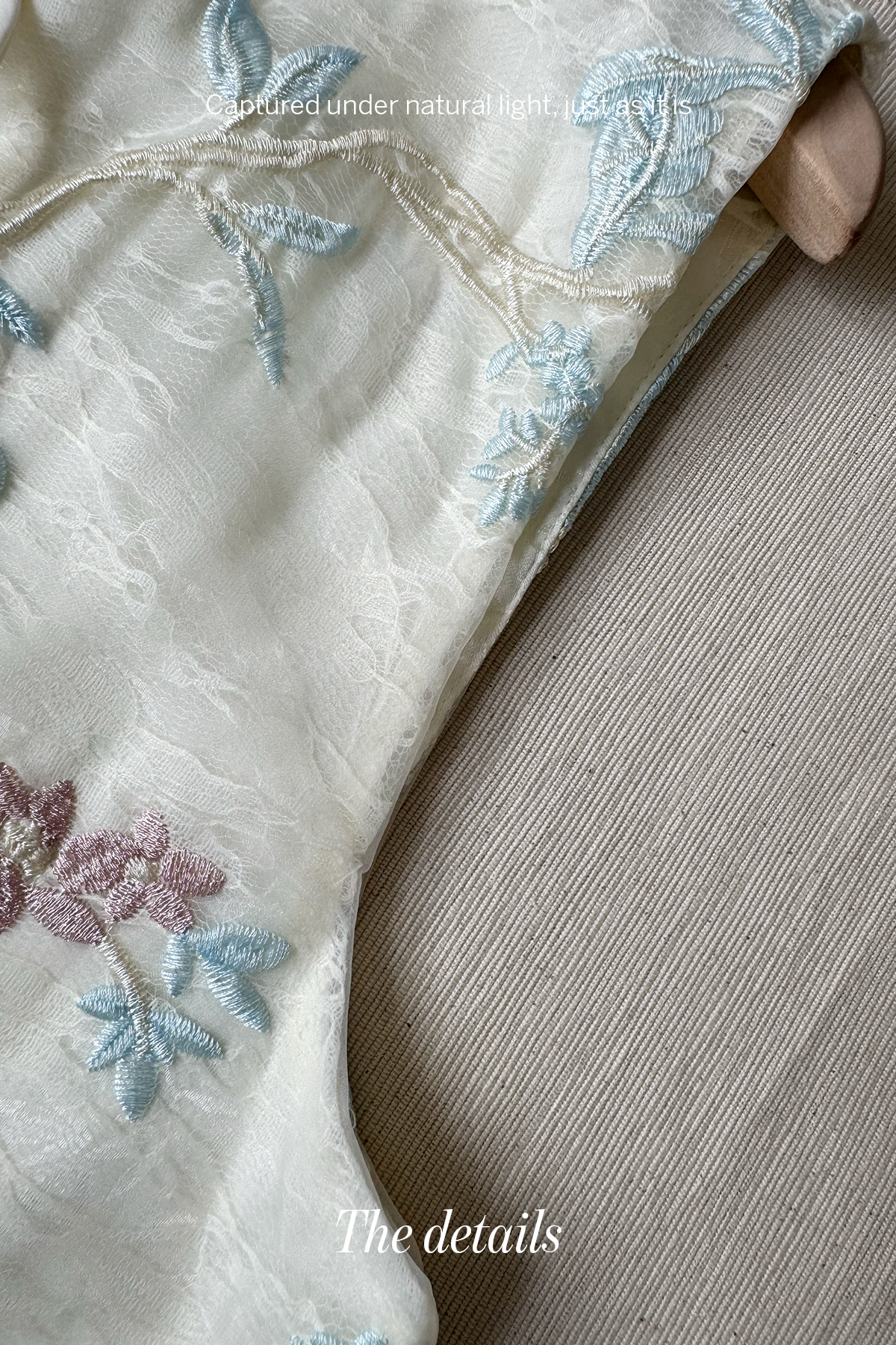 A light blue and white two-piece set featuring delicate floral embroidery, pairing a Chinese knotted vest with a flowing skirt for an elegant, airy look.