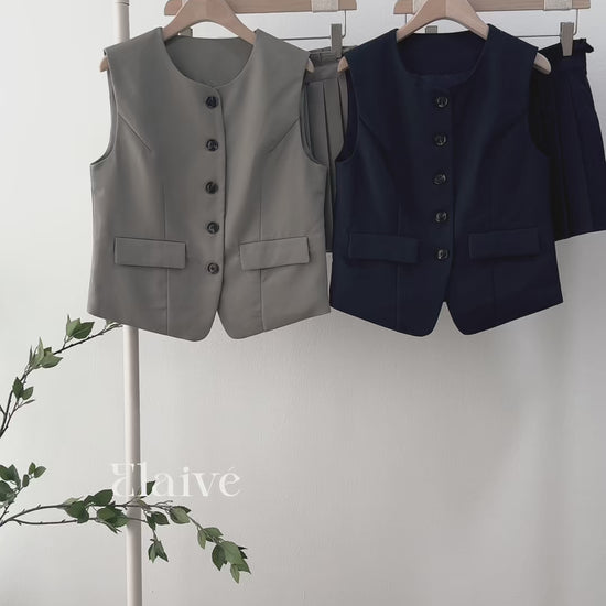 Structured vest paired with a pleated skirt — modern, polished, and effortlessly stylish.
